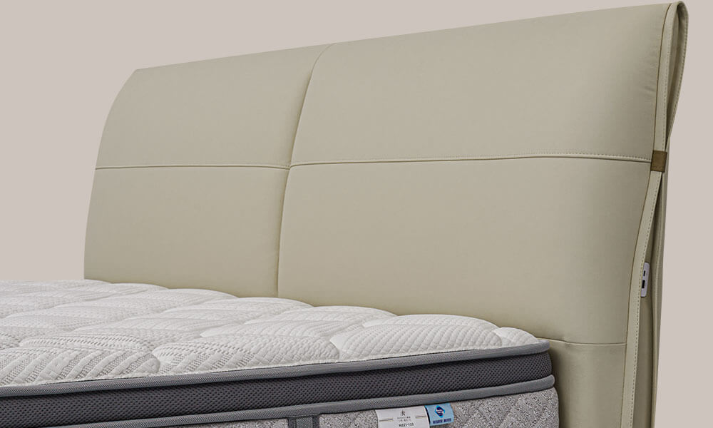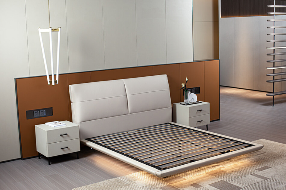 悬浮轻薄床邦,配以晨雾白简约床屏
